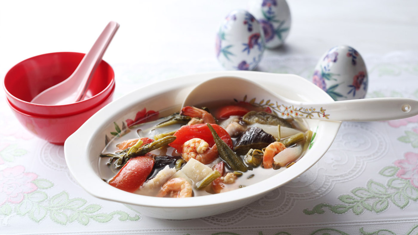 We recommend the usual suspects that come with a sinigang – fish sauce, lemon juice, salt and pepper. If the soup is too strong, add a little chicken to it, this will tone down the taste of tamarind and balance out the flavors.