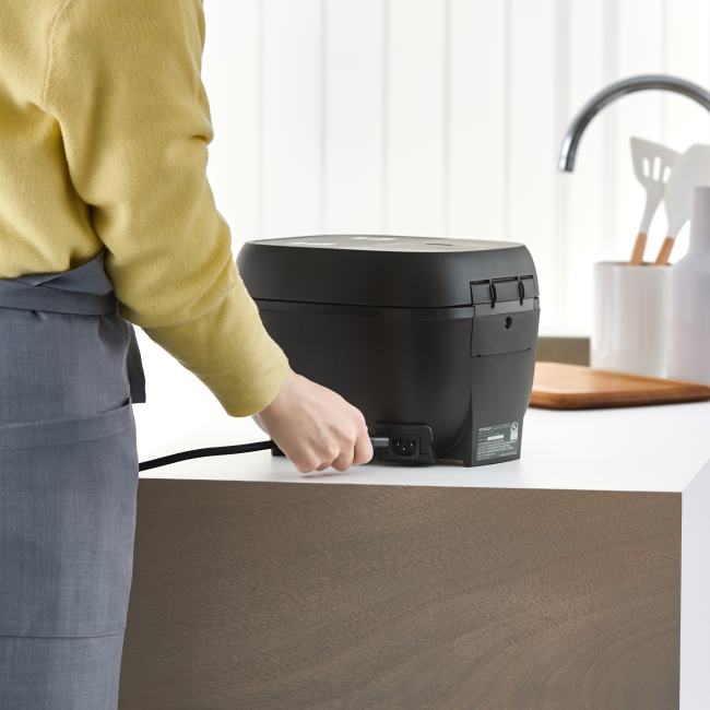 The detachable power cord makes it easy to bring the rice cooker from the kitchen to your dining table.