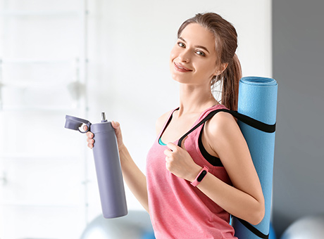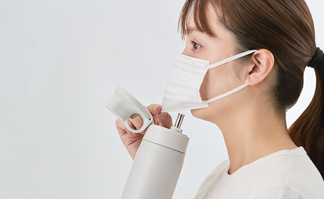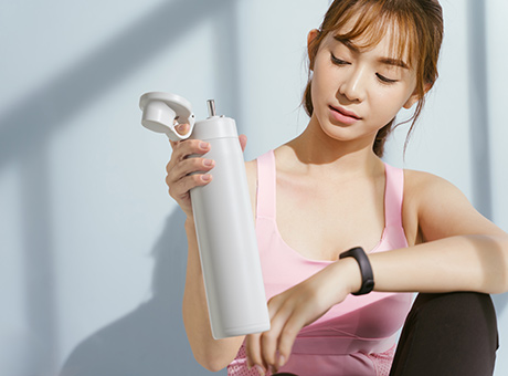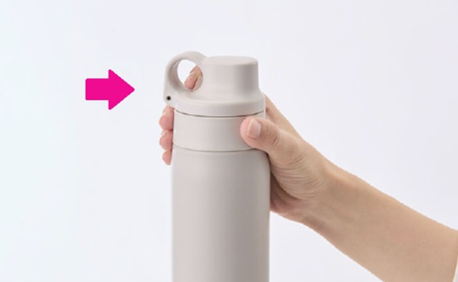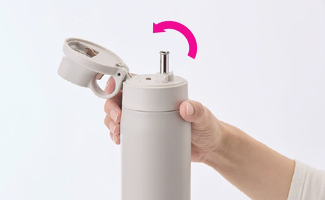 The lid opening mechanism features a loop stopper designed to make the lid easy to open with one hand. The mechanism allows you to push the button to unlock the lid with one finger and then hold the loop with the finger to open the lid. You can rehydrate yourself easily while working at your desk or enjoying outdoor activities.