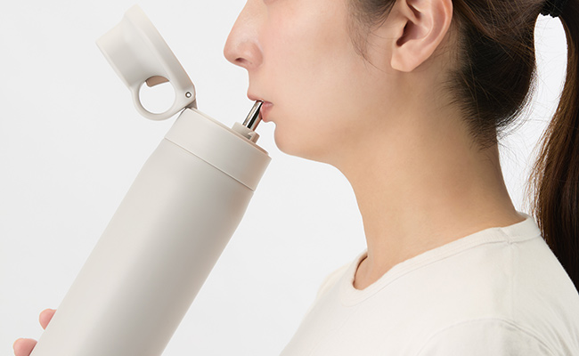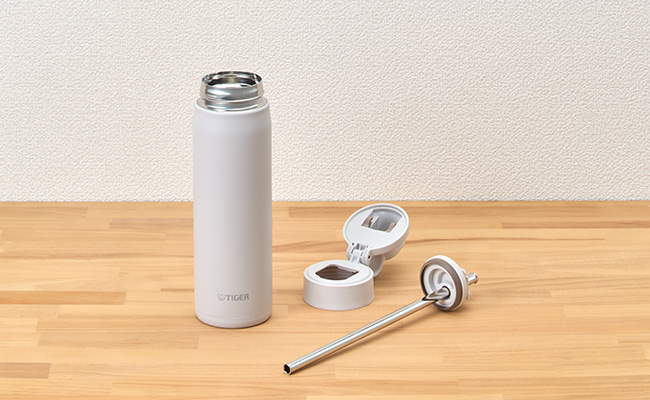 A stainless-steel straw that can be used hygienically is incorporated into the spout. This allows you to drink with ease without tilting the bottle very far.