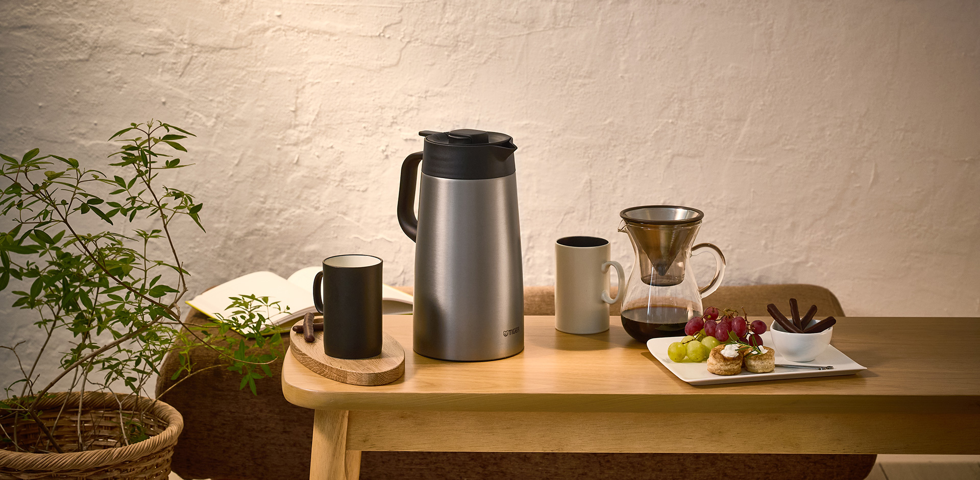 This energy-saving vacuum-insulated pot that does not use electricity can be placed in your dining room or living room and allows you to sit down and take your time to enjoy drinks.