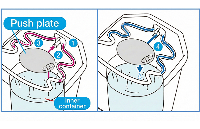 When the water boiler is plugged in, the electric dispensing function allows you to pour with one finger. When there is no power source and the device is unplugged, you can still pour hot water using the air dispensing mechanism.