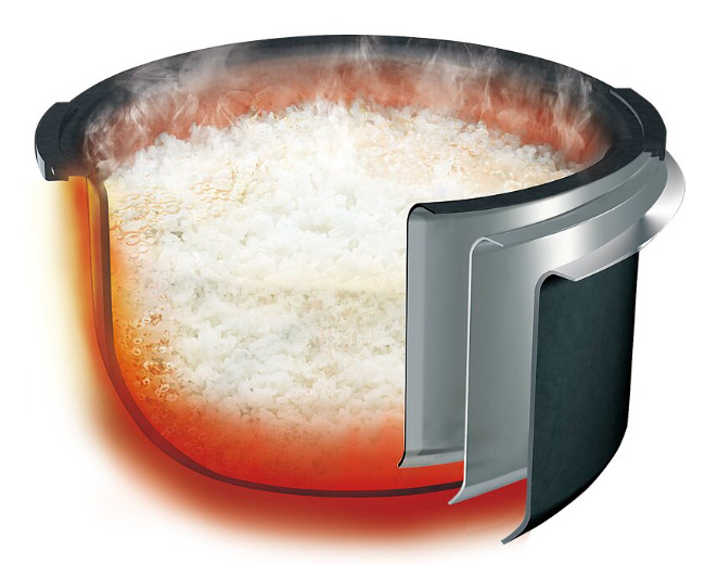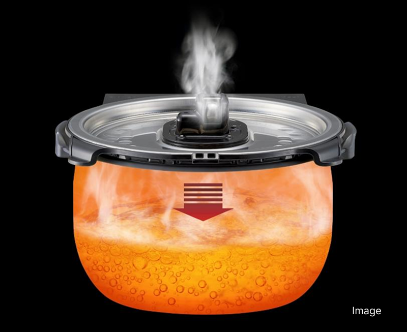 A pressure of approximately 1.25 atm is applied during cooking to raise the temperature inside the inner pot to approximately 106 degrees Celsius*, bringing out the stickiness and sweetness of the rice.