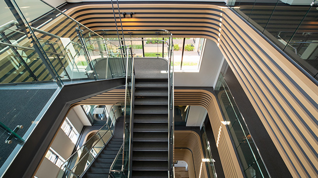 社内では階段の利用を推進し、健康やコミュニケーションの促進を行っています。