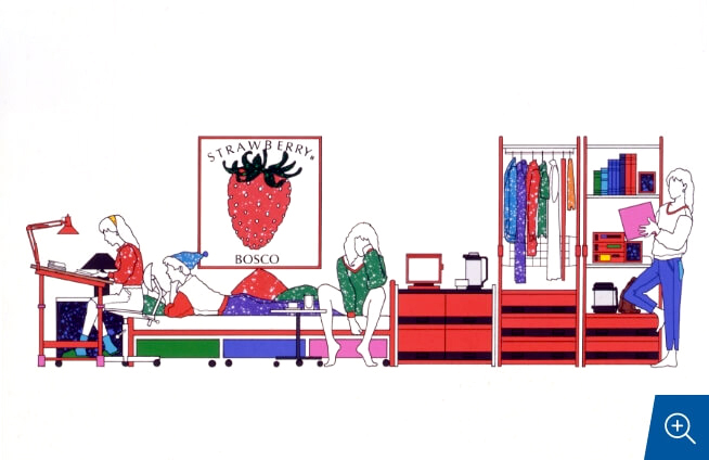 当時のスローガンである「いいものは、いい生活ともだち。」をテーマに、弊社の商品群を演出してくださいました。新しい技法を取り入れられていますし、現代でもそのまま使えるイラストばかりです。
