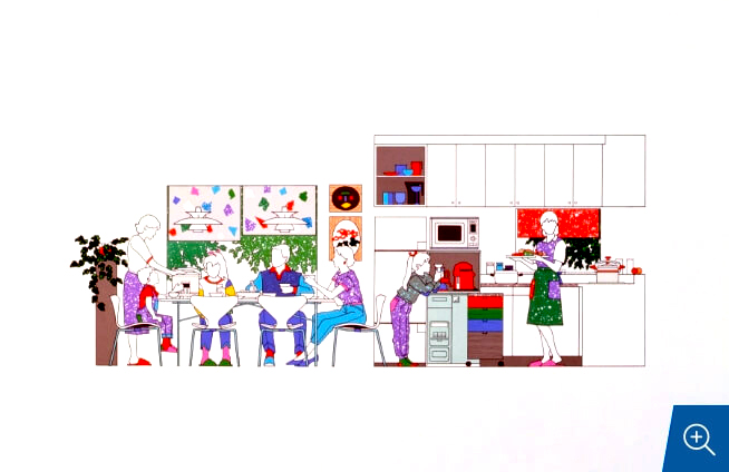 時代が変わっても、人が心地いいとか楽しいと感じることはそれほど変わらないですね。「幸せな団らん」というのは人が中心ですから、いかに幸せで楽しそうな人を描き込むか。僕がデザインするときのテーマは「楽しい」ということ。笑顔の生まれるデザインが一番だと考えています。それにふさわしい色、形、素材、使い勝手、生活、空間、時間を組み合わせて丁寧に一つひとつ、生活の道具はこれでなくてはならないというふうに、最高の舞台をつくるのが僕たちデザイナーの仕事です。人はその舞台にふさわしい演技をしようとして役者になっていくのですね。お父さん、お母さん、子どもそれぞれが自らを演じることで成長していく。そんな舞台をどうやってつくりあげるか。