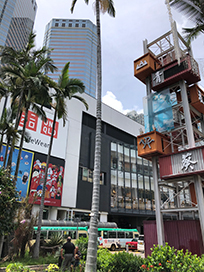事務所があるのは、香港新界・葵涌(Kwai Chung)地区。近くには(車で5分程度)大型コンテナ船が入港する葵涌コンテナターミナル(貨物取扱量世界6位)があり、コンテナ用トラックがひっきりなしに走っています。周辺は倉庫ビル・工業ビルが沢山ある地区でもあり、当社も鍾意恒勝中心ビル(倉庫・工業ビル)に入居しています。駅前には新旧の2つのショッピングモールがあり、ローカル系の小型店舗からレストラン街、映画館、スーパー、日系企業の店舗まで充実しています。