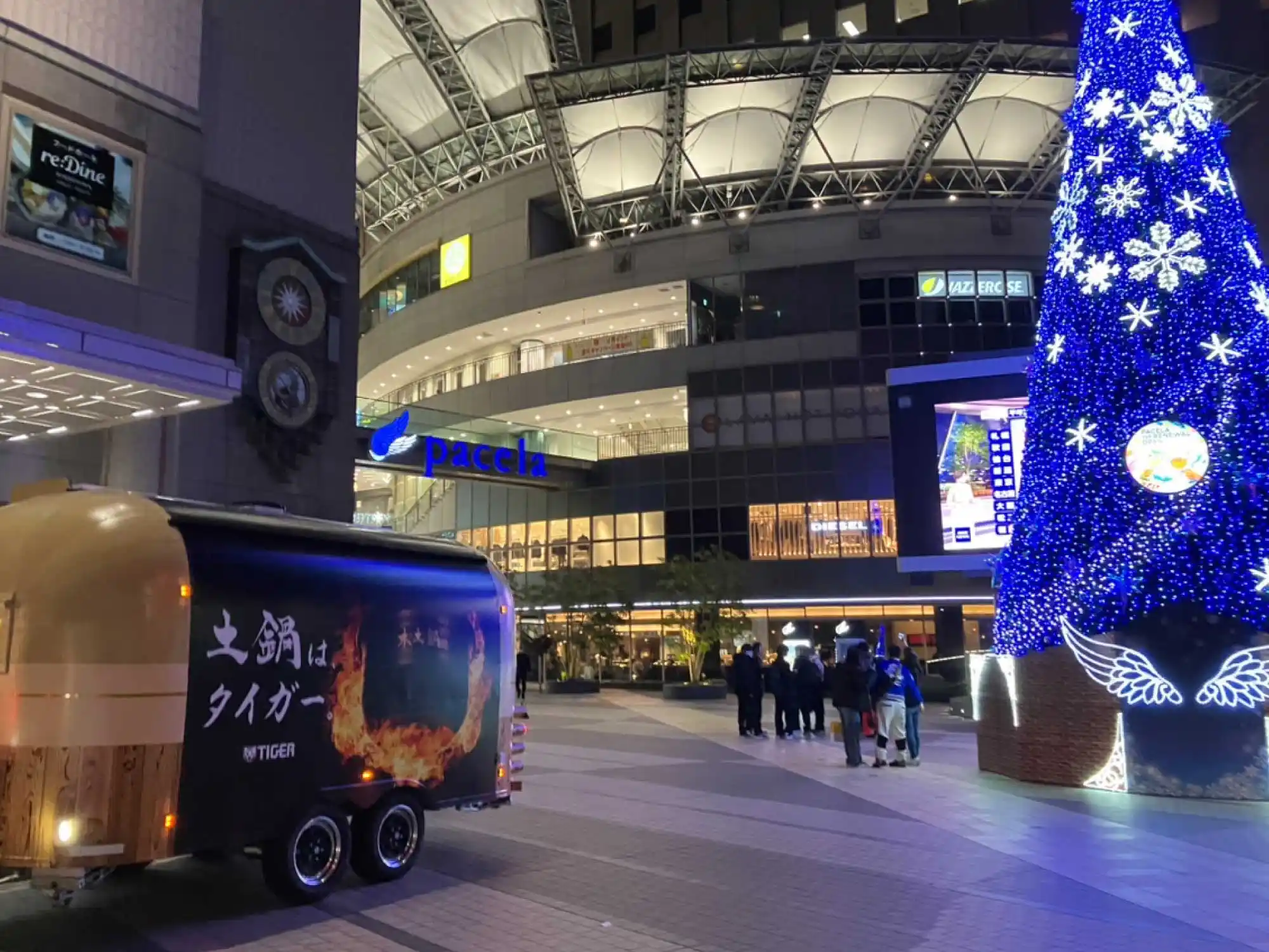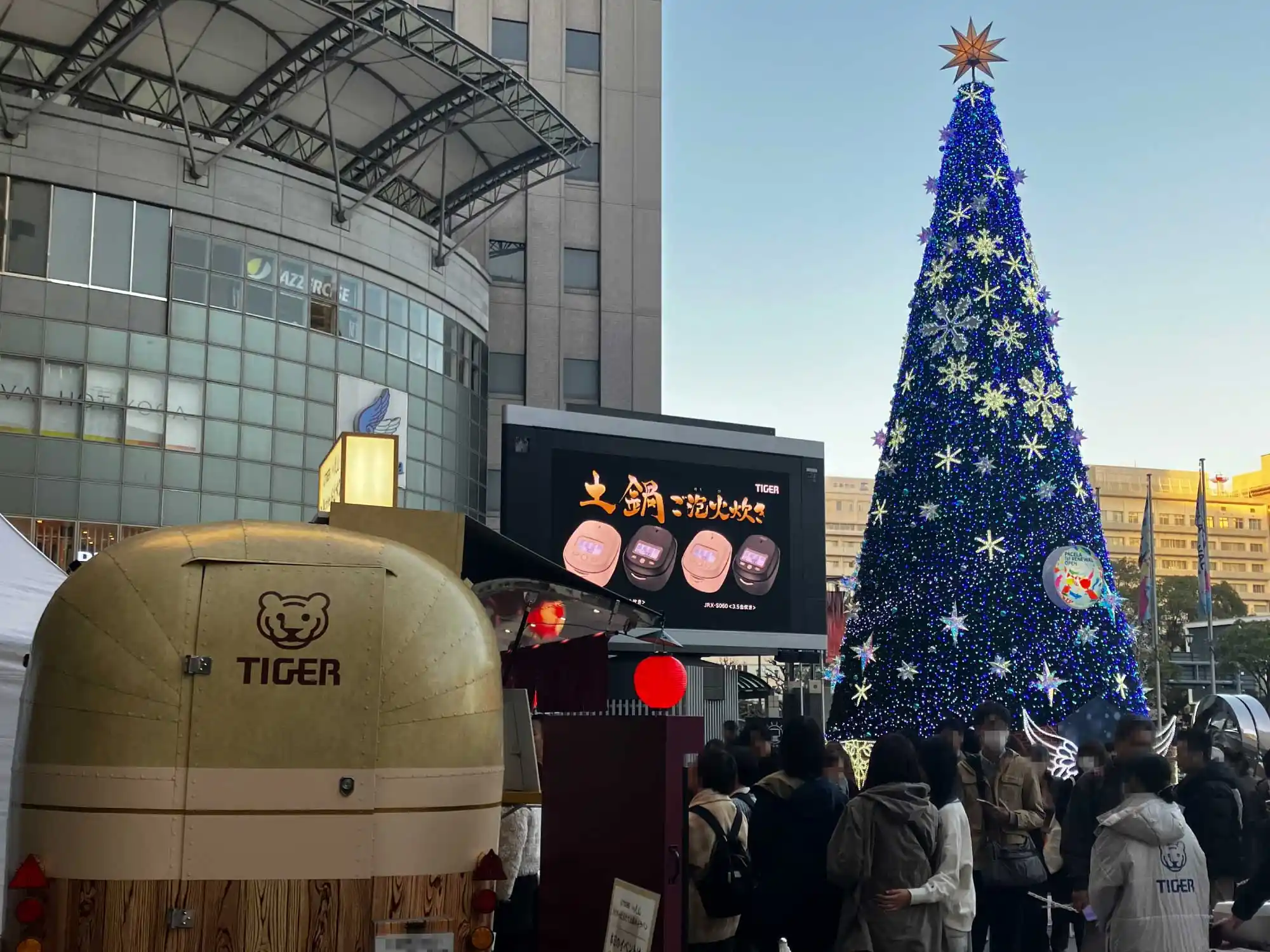福岡はすっかり冬の装いでクリスマスツリーの目の前に土鍋号を設置してのイベントとなりました!