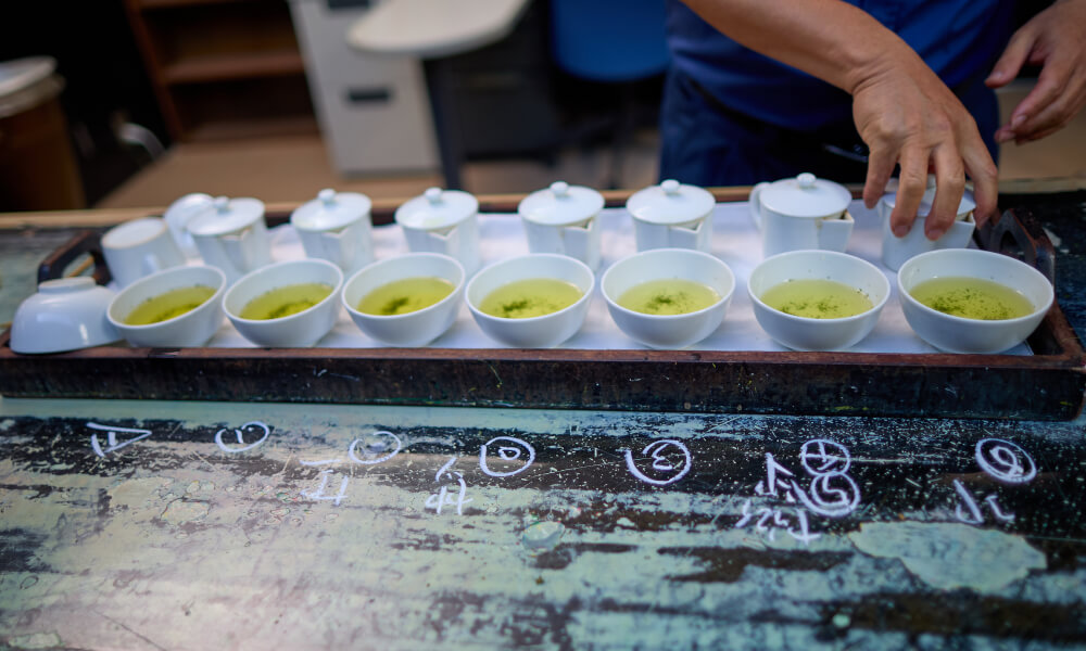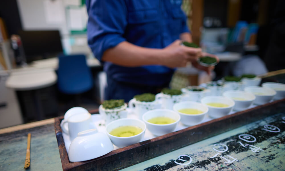 上質なものほど青み(緑色)が濃く、旨み(甘味)が強く苦渋みが少ない、良い香りが立っているなどと一般的には評価できますが、味は濃いが香りが少し弱い、味はやや薄いけれど「みる芽(若い芽)」の香りがするなど、茶葉にはそれぞれ特徴があります。 その特徴をうまく組み合わせてブレンドし、提供する商品に相応しい美味しさにしていくのが茶師の役割です。五感を研ぎ澄ました感性と、培った知識と経験だけが頼りの世界です。