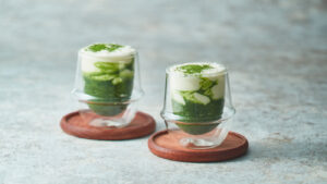 小山:レシピは誰でも美味しく楽しめる抹茶の濃度に調整していますが、山政小山園の上級抹茶は苦渋みが少ないので、少しリッチに入れても香り高く旨みを感じて美味しく楽しんでいただけると思います。追い抹茶は上級抹茶ならではの楽しみ方です。