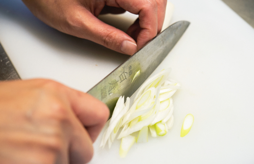 長ネギは白い部分7に青い部分を3くらいの割合で使うのがちょうどいい。 味と食感の違いを楽しみます。