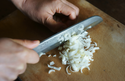 2.長ネギをみじん切りにする。