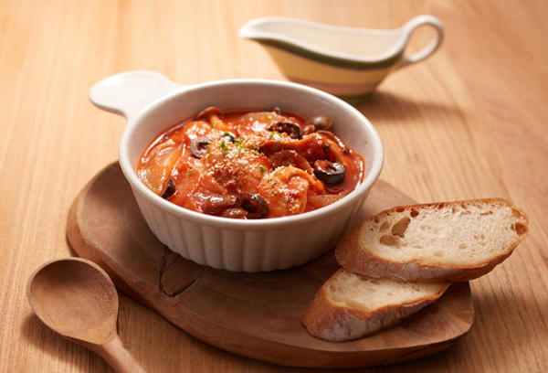 材料を入れてスイッチを押せば、あとは待つだけでできあがり。調理が楽で時短にもなる炊飯器調理は、毎日の食卓の強力なサポーターです。例えばこちらの「鶏肉としめじのトマトソース煮」。
