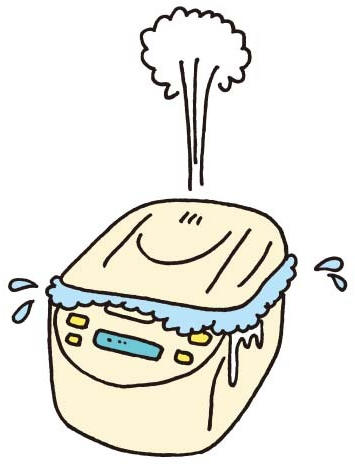 ポリ袋が内ぶたに貼り付き、蒸気の通り道が塞がれることで中身が吹きこぼれたり、勝手にふたが開いてしまう危険があります。