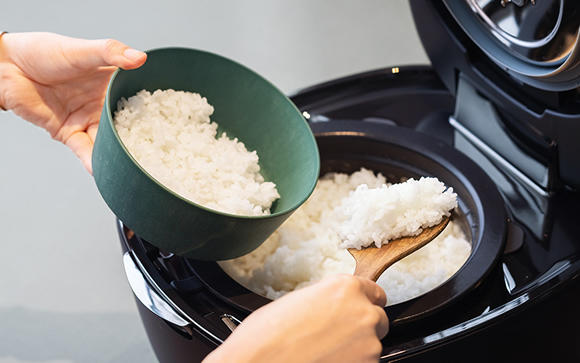 〈9°〉に使われているSPS樹脂は、電子レンジ加熱時の発熱量が低く、食材だけを効率よく加熱することができます。器の熱に水分を奪われずふっくら仕上げてくれるから、「表面だけ熱くて中が冷たい」といった、ありがちな解凍ムラも解決。冷凍ごはんも、炊きたてのような味わいを楽しめるのも魅力です。