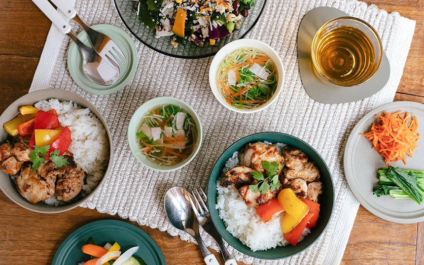 「ニュアンスのあるアースカラーなので、お米はもちろん、野菜や果物など食材の色を選びません。どんな食材を盛ってもおしゃれに納まります」(高橋さん)。SPS樹脂のザラっとした質感が手なじみよく、軽量で割れにくい。使い心地と機能美を併せ持ったアイテムです。