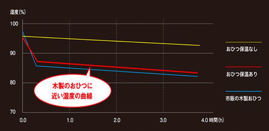 「おひつ保温」していたごはんだと炊きあがりでなくてもおいしさが長続きしている。