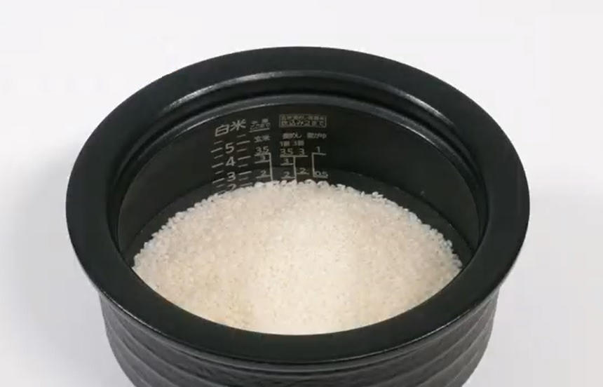 内なべを水平に置き、お米を平らにならしてから、内なべの内側の目盛りに合わせてお水を注ぎます。お水の量が安定しないと、こげつきやふきこぼれなどの原因になります。