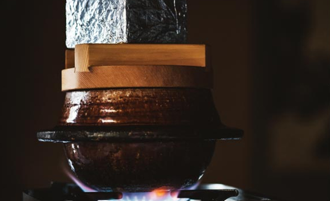 有機質の土でできた釜は通気性があり、空気が入って対流しよる。この対流が、お米がごはんに変わる瞬間を生かすのです。