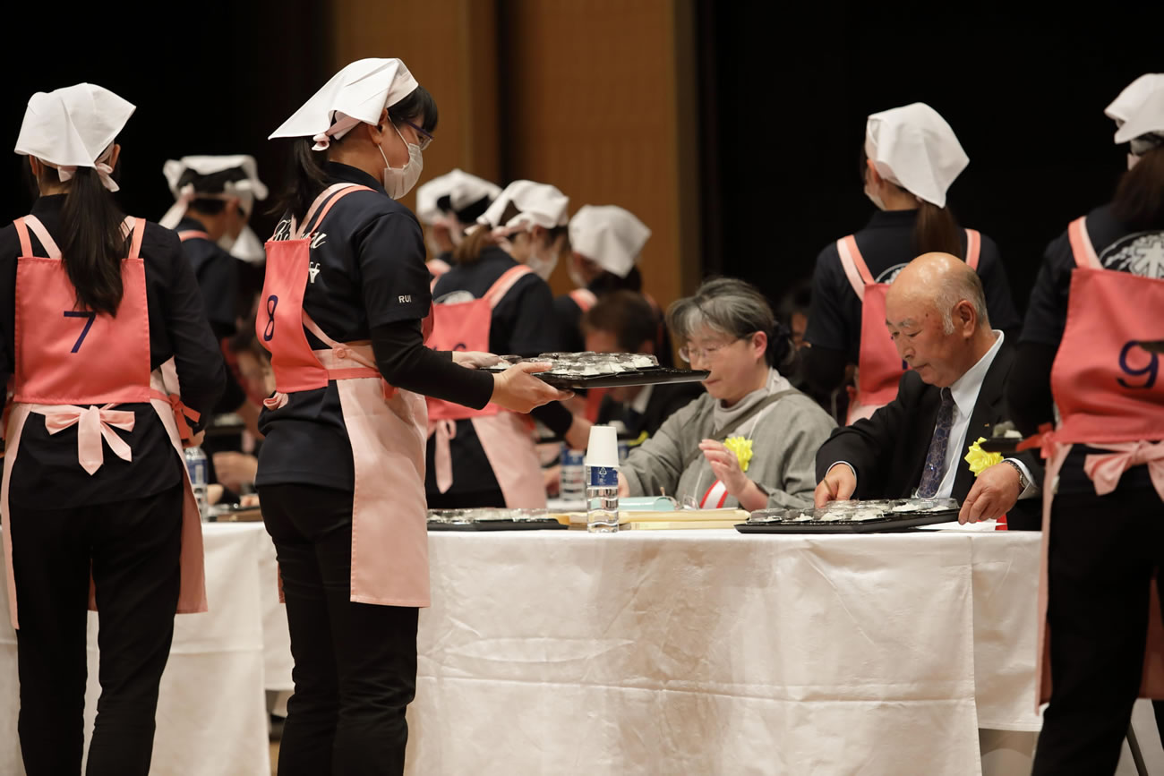 最終審査にノミネートされたのは42検体。食味鑑定士・バイヤーなど30人の審査員が官能審査法に基づいて炊飯したごはんを実際に食味して、外観、香り、かたさ、粘り、甘み、のど越しなどをチェックします。