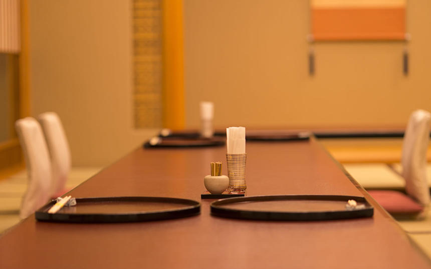 床の間には、料亭側のおもてなしとして、季節にちなんだ掛け軸や花が飾られています。部屋に通されたら、床の間のしつらえを鑑賞しましょう。これも料亭の楽しみのひとつです。