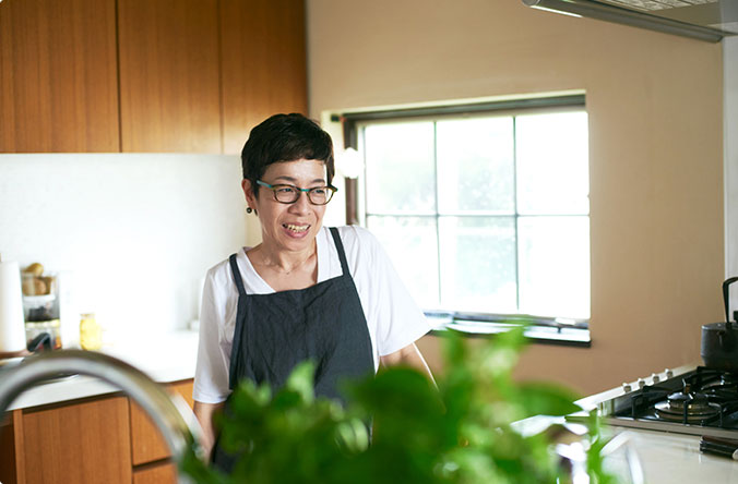 「料理の仕事も、私はいつも家族に作るのと一緒の気持ちで作っています。スタッフは食べることが好きな人の集まり。だから仕事ではあるのですが、みんなが来ると自分の気持ちも上がって、おいしいもの食べさせたいとか、これも作りたいという気持ちになるんです。家族みたいなものなのよね」