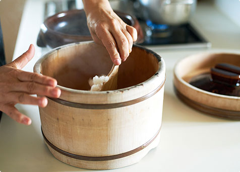 炊き上がったごはんはすぐにおひつへ。このひと手間でさらにおいしくなる