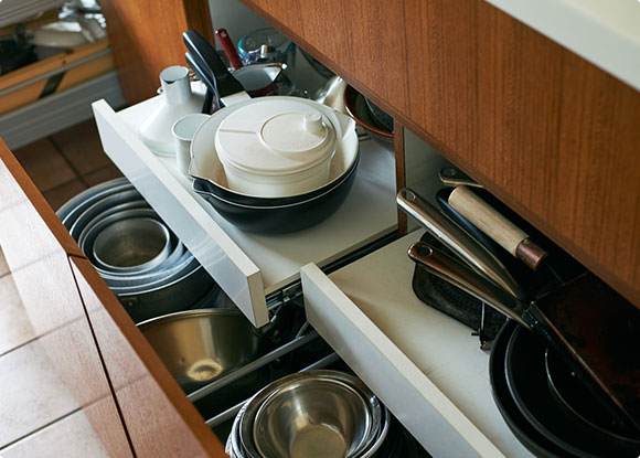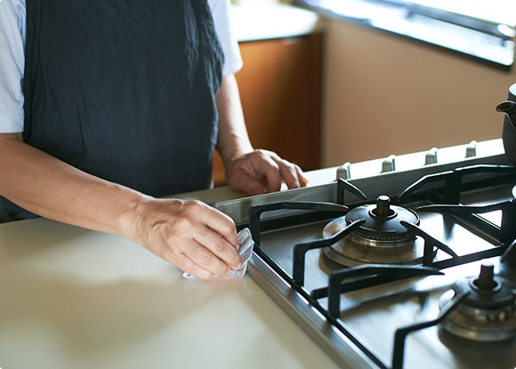 料理を終えた台所は、きれいに拭き上げられ、すっきりと次の出番を待っています。清潔に保つコツを伺うと、「掃除をまめにする、これに尽きます」ときっぱり。