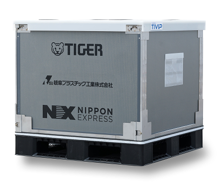 この断熱ユニットパネルを日本通運の輸送用スリーブボックス「プロテクトBOX」へ採用し、「プロテクトBOXサーマル」として作り上げることで、輸送時の温度を長時間安定的に保つことが可能となり、従来必要だった蓄冷材・蓄熱材の使用を削減。