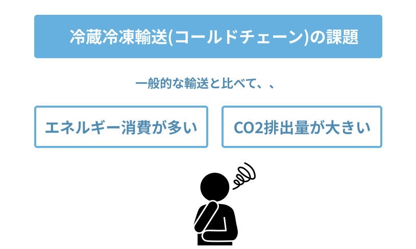 一方で、冷蔵冷凍輸送は一般的な輸送に比べてエネルギー消費が多く、CO₂排出量も大きいという課題があります。