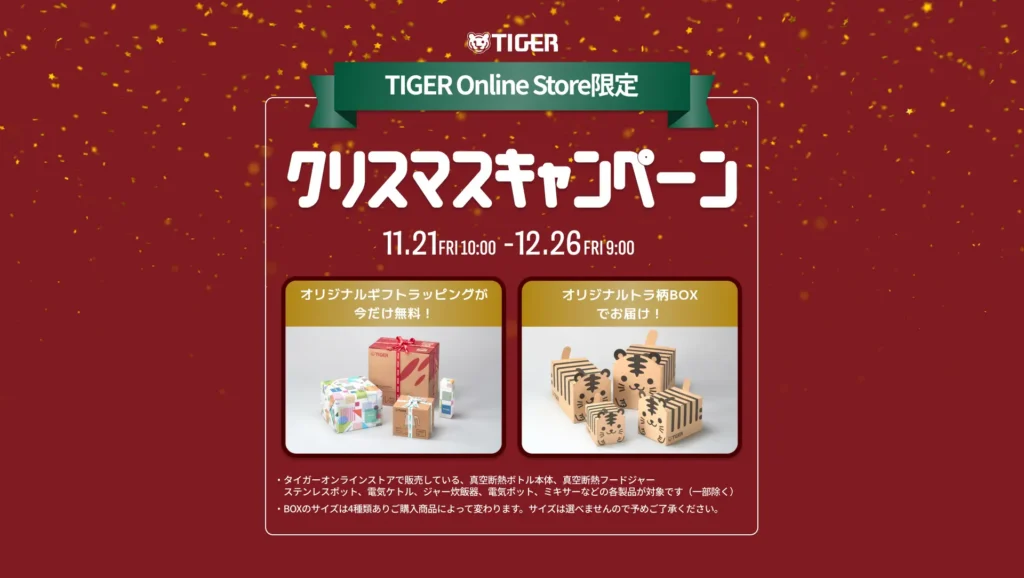 2025年11月21日10:00から12月26日9:00までの間にタイガーオンラインストアで商品をご購入いただいた方を対象に、2つの特典をご用意しました。