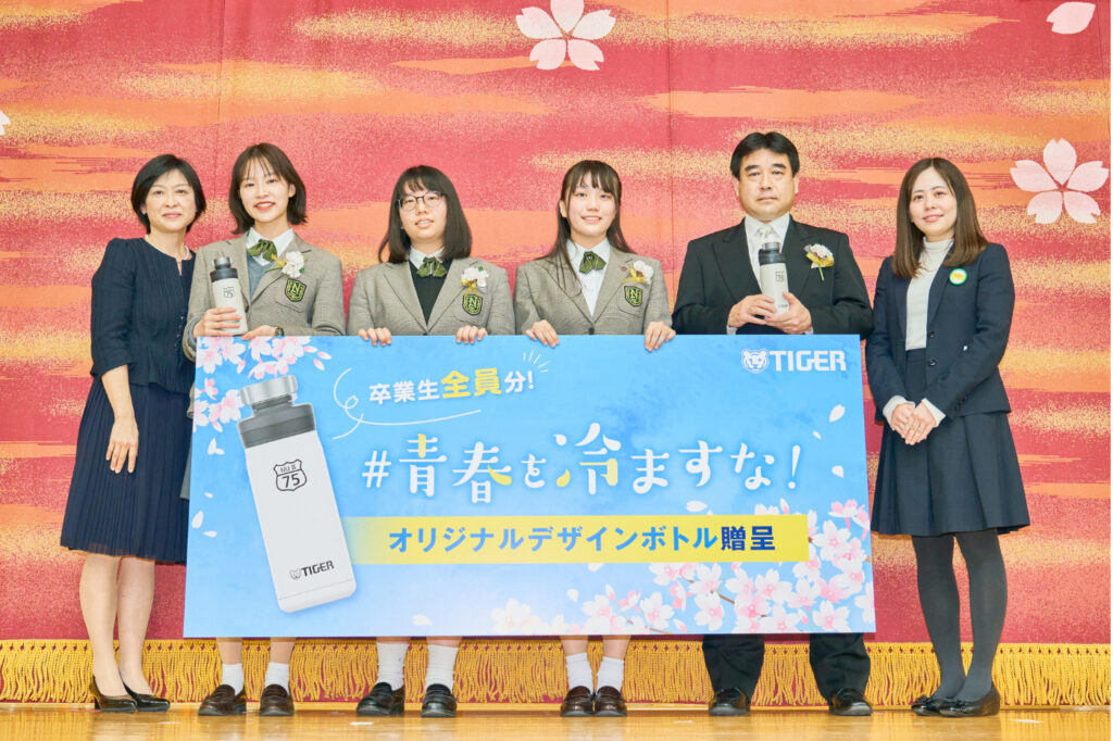 熱制御テクノロジーで世界をリードするタイガー魔法瓶株式会社(社長:菊池嘉聡、本社:大阪府門真市)は、2023年春に卒業を迎える日本大学第二高等学校の第75回卒業生400名へサプライズでオリジナルデザインのボトルをプレゼントする『タイガー魔法瓶 #青春を冷ますな ボトル贈呈式』を3月1日(水)の卒業式の日に行いました。