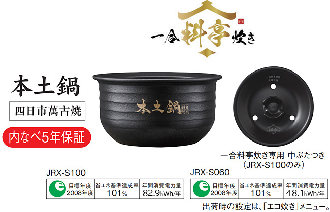 「土鍋ご泡火炊き JRX-S100/S060」