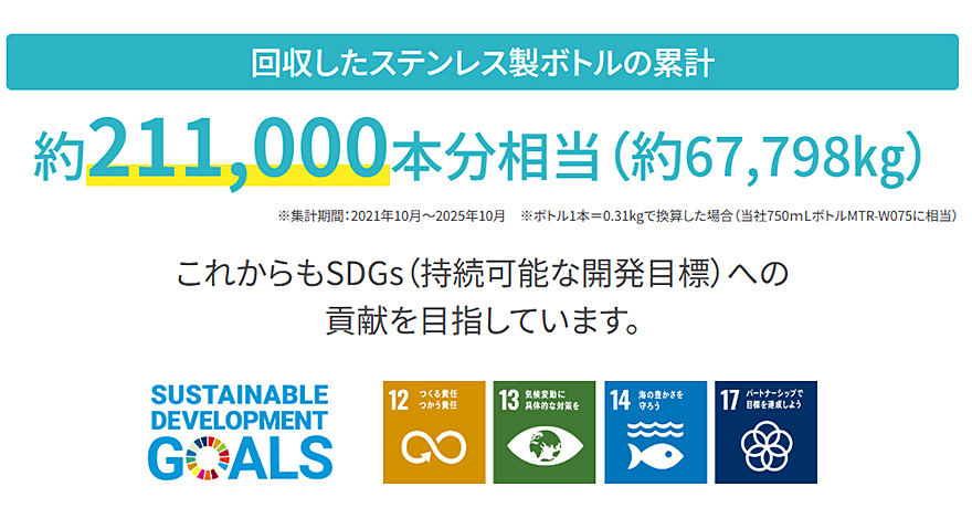 役目を終えたステンレス製ボトルの回収と再資源化の取り組みを実施中