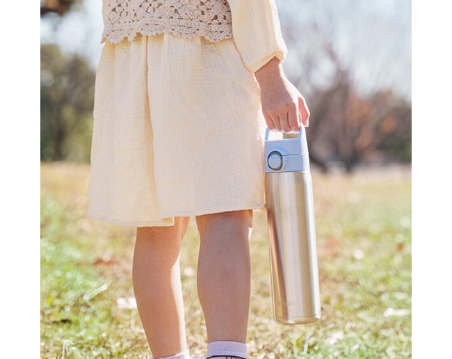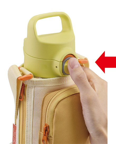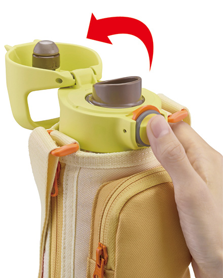 ハンドルは持ちやすく、お出かけ時に便利。ふたは、ワンプッシュで簡単にオープンするので、片手で操作して、すばやく水分補給することができます。