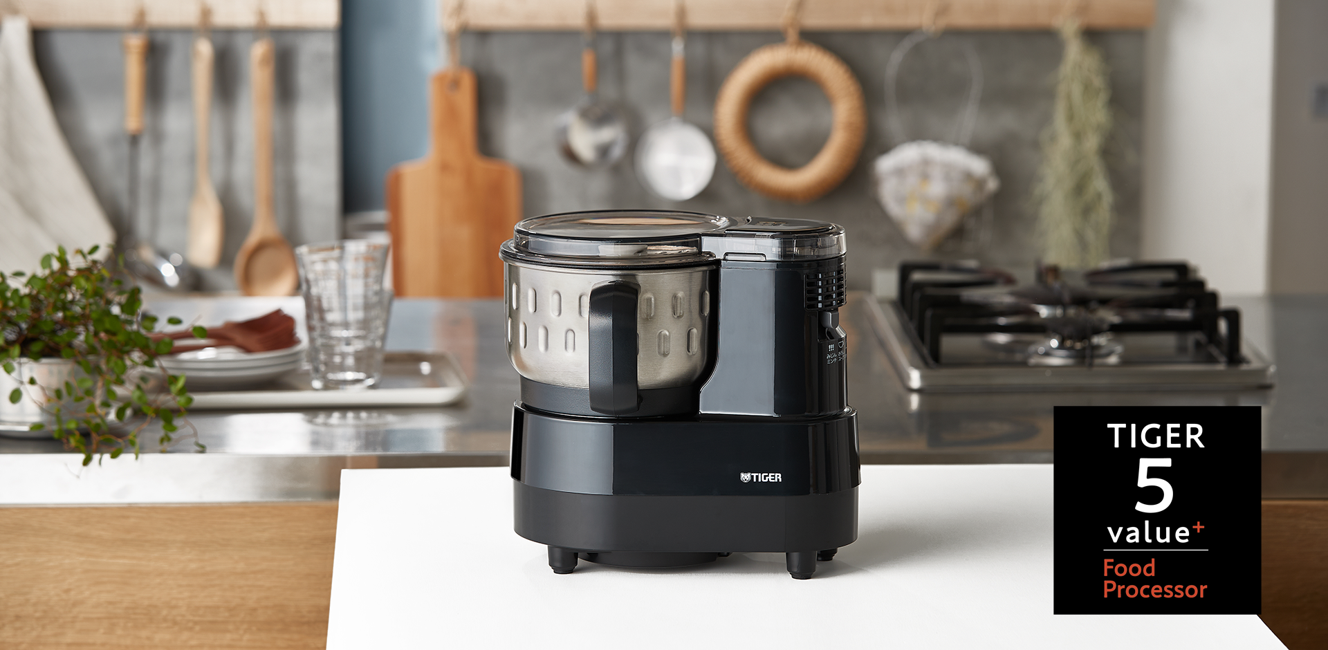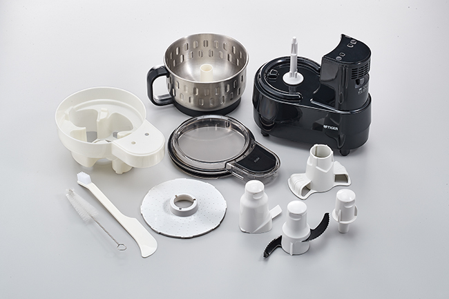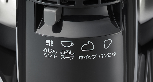 チョッパーカッター、おろしカッター、パンこねブレード、ホイップブレード付属で挽き肉やジュース、ポタージュスープ、大根おろし、パン、生クリームのホイップまで多様な使い方ができ、お料理の幅が広がります。