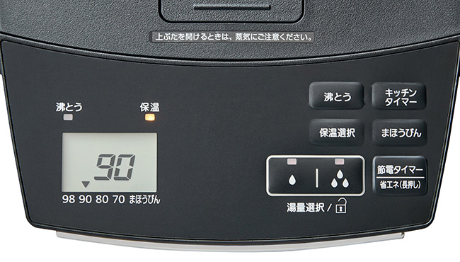 お好みの湯温(98・90・80・70)に設定でき、設定される保温温度になると湯沸かしが終了します。