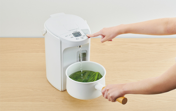料理の下ごしらえや、コーヒー、お茶、調乳などの用途に合わせて、最適な湯温をお選びいただけます。