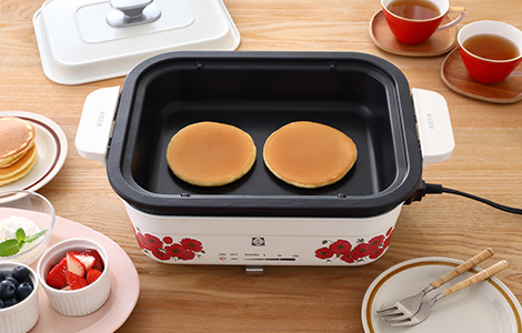 焼きムラを抑え、熱をまんべんなく伝えるヒーターでパンケーキもきれいに焼き上がります。