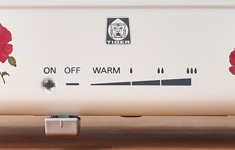 温度調節の目盛は、保温(約70度)から最大火力(約250度)の4段階に設定でき、横にスライドするだけでかんたんに温度を調節できます。