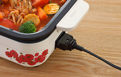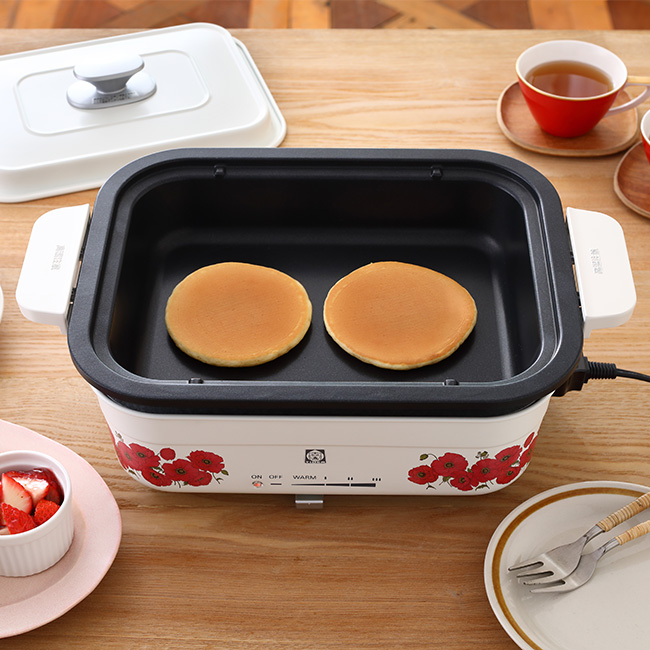 なべ料理も楽しめる深さ約46mmのなべやホットケーキもきれいに仕上がる焼きムラができにくい3往復ヒーター搭載。