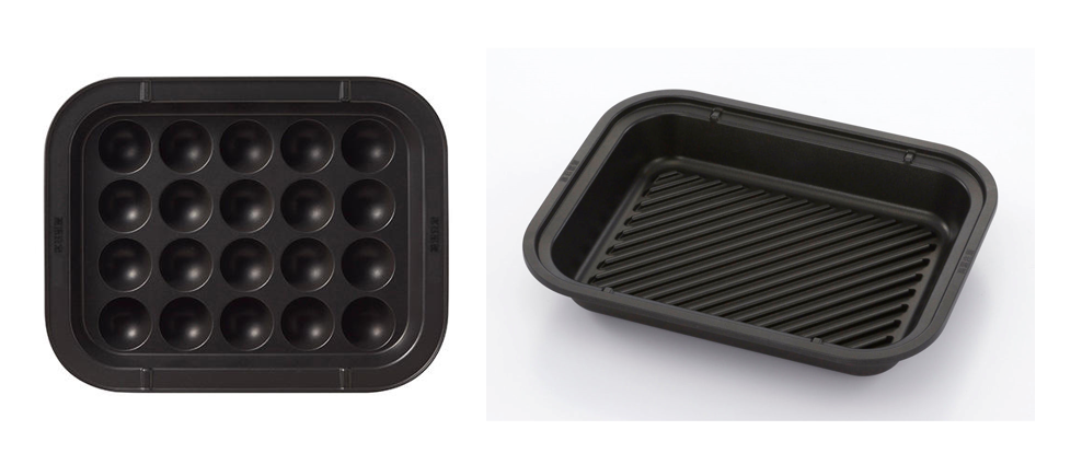 最大20個のたこ焼きが作れる別売のボールプレートと、お肉料理やワッフルも楽しめる波形グリルプレートに対応しています。