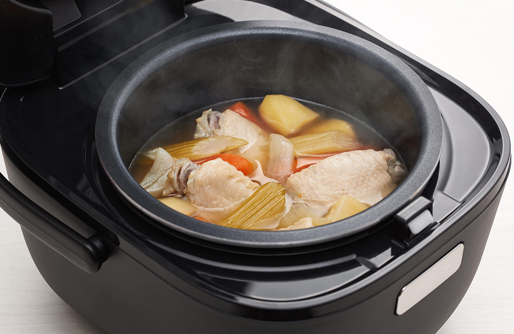 調理時間を設定すれば、 お手軽な時短調理から煮込み料理まで調理可能。