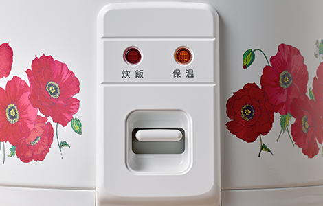 スイッチボタンは一つ、ランプも炊飯/保温の2種類のみと使いやすいシンプルな設計。
