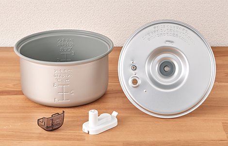 お手入れパーツは内なべ、内ぶた、つゆ受け、調圧キャップの4点だけ。お手入れも簡単です。