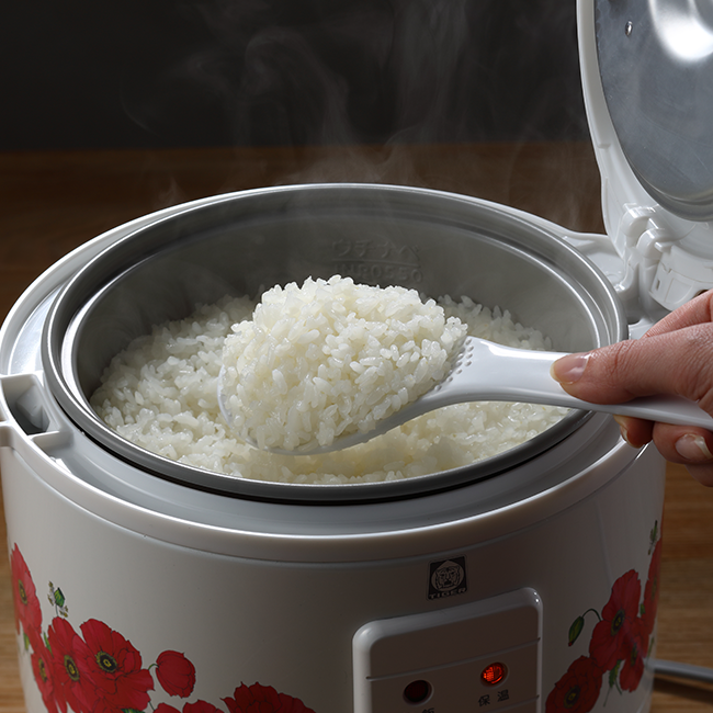 シンプルなつくりで昭和の時代を感じさせる電気式の3合炊きジャー炊飯器です。