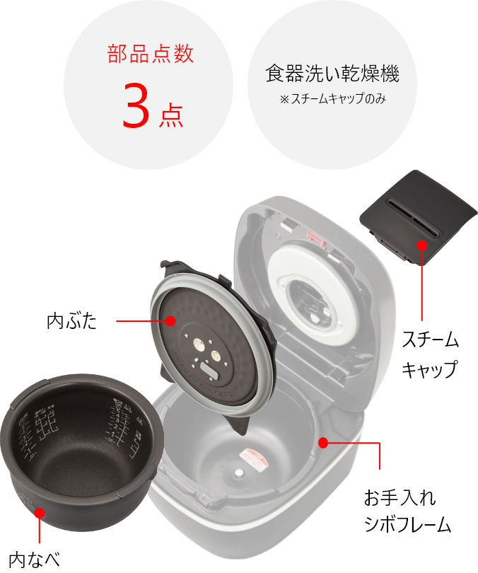 お手入れシボフレーム加工でおねばがついてもはがれやすい仕様です。