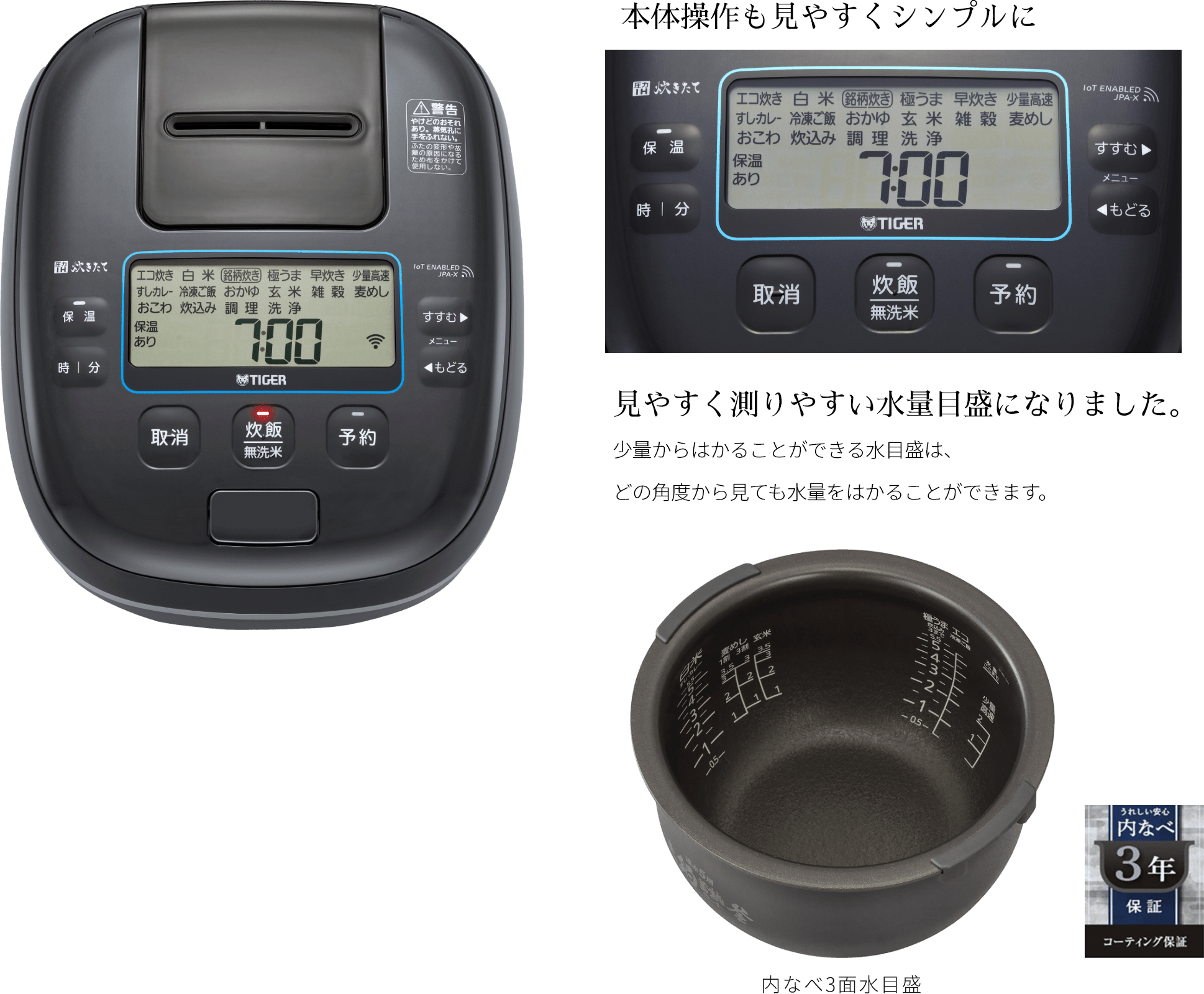 「家事DX(デジタル・トランスフォーメーション)」IoT搭載でデータを連携しお米の購入から炊飯方法までサポート。ごはんに関わる家事がより便利になるよう変革をもたらします。