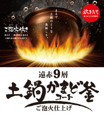 小容量サイズに「遠赤9層土鍋かまどコート釜」を搭載して土鍋のような泡立ちと高火力を生み出す「ご泡火炊き」を実現しました。