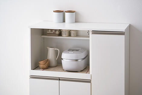 低めのフォルムなので引き出し式のキッチンラックにすっきり収まります。